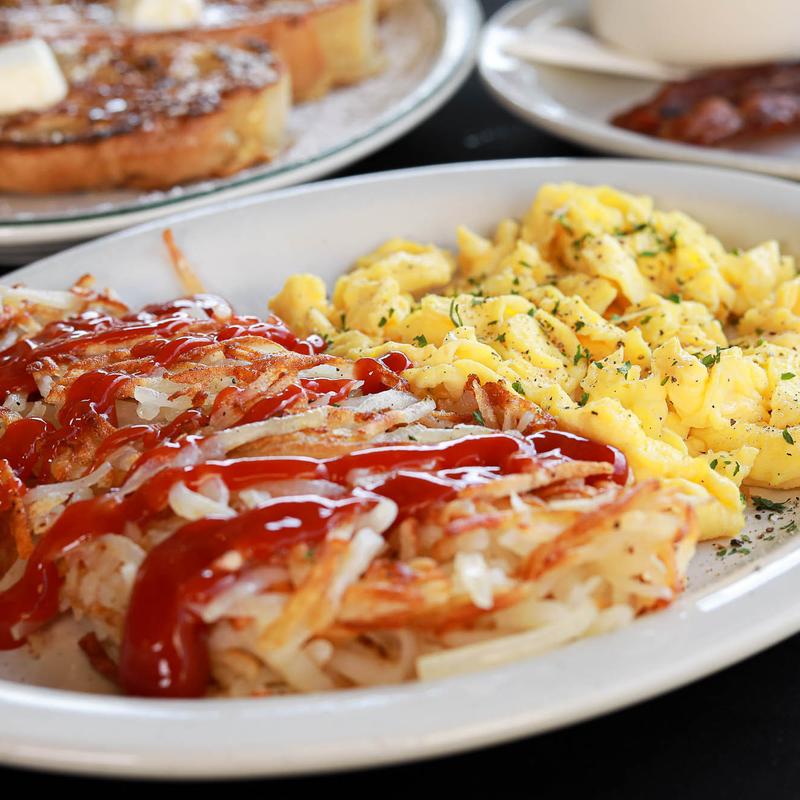Two $9.25 | Three $10.95 • Large pancakes served with choice of meat and side • Add (+$1.75) : Blueberries | Pecans | Almonds | Cranberries | Raisins | Chocolate Chips | Peanut Butter