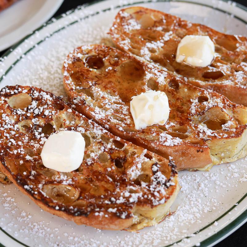 Two $9.25 | Three $10.95 • Eddie’s Famous French toast (choice of ciabatta or texas toast) sprinkled with powdered sugar served with choice of meat and side.